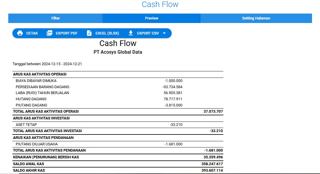 Arus kas yang sehat memastikan perusahaan memiliki cukup uang untuk membayar kewajiban tepat waktu, seperti gaji karyawan, tagihan supplier, sewa tempat, dan pembayaran utang. Dengan memantau arus kas secara berkala, perusahaan dapat mengidentifikasi potensi masalah keuangan lebih awal dan mengambil tindakan pencegahan sebelum terjadi krisis. Informasi cash flow membantu dalam perencanaan keuangan yang lebih akurat, seperti penyusunan anggaran, proyeksi pendapatan, dan perencanaan investasi. Informasi cash flow membantu dalam pengambilan keputusan investasi yang lebih tepat, seperti pembelian aset baru, ekspansi usaha, atau pengembangan produk.