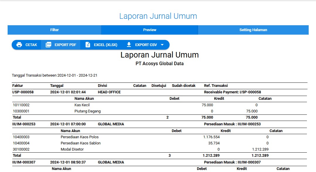 Jurnal umum adalah catatan akuntansi pertama yang digunakan untuk mencatat setiap transaksi keuangan yang terjadi dalam suatu bisnis secara kronologis. Manfaat jurnal umum sangat penting bagi pengelolaan keuangan usaha. Setiap transaksi dicatat secara rinci, termasuk tanggal, akun yang terpengaruh, dan jumlahnya. Hal ini membantu mengidentifikasi dan memverifikasi setiap transaksi yang terjadi. Dengan mencatat transaksi secara sistematis di jurnal umum sebelum dipindahkan ke buku besar, potensi terjadinya kesalahan dalam laporan keuangan dapat diminimalisir.