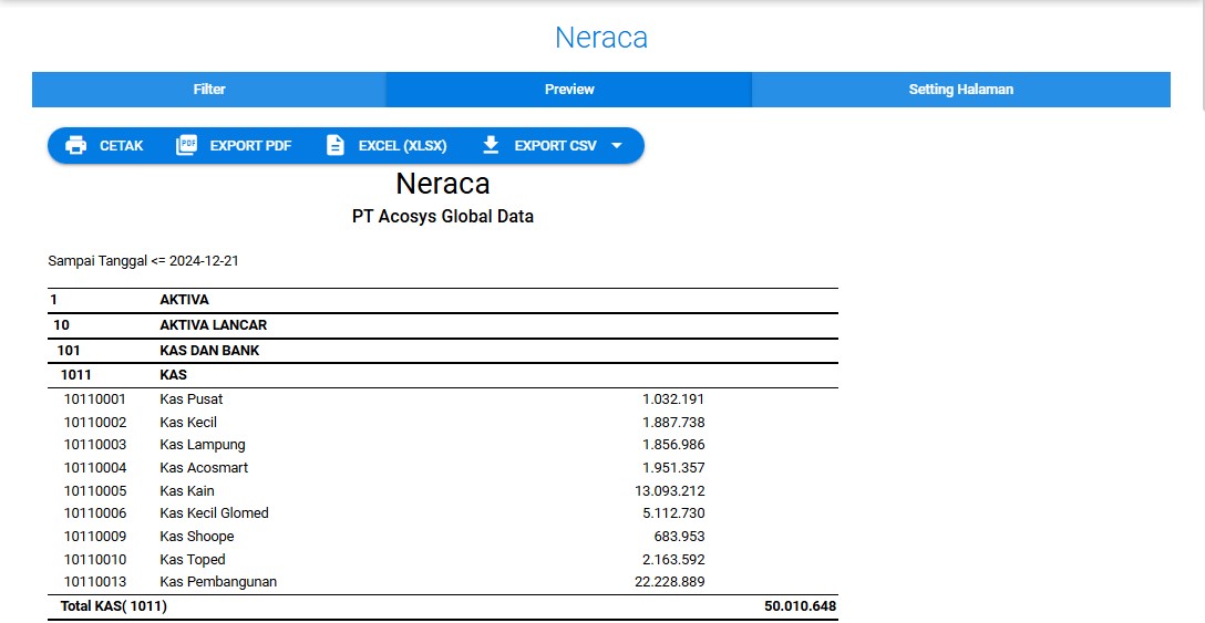 Daftar aset memberikan gambaran yang jelas dan terperinci mengenai kekayaan yang dimiliki perusahaan. Ini termasuk aset lancar (seperti kas, piutang, persediaan) dan aset tetap (seperti tanah, bangunan, mesin, kendaraan). Dengan mencatat aset, perusahaan dapat mengetahui nilai ekonomi dari sumber daya yang dimilikinya. Informasi ini penting untuk menilai posisi keuangan perusahaan. Dengan mencatat aset, perusahaan dapat mengetahui nilai ekonomi dari sumber daya yang dimilikinya. Informasi ini penting untuk menilai posisi keuangan perusahaan. Dan akan membantu mencegah kehilangan, pencurian, atau penyalahgunaan aset.